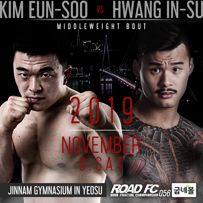 [세계타임즈 김인수기자] ROAD FC (로드FC)는 오는 11월 9일 여수 진남체육관에서 열리는 굽네몰 ROAD FC 056에서 대결한다. 이날 권아솔의 복귀전으로 샤밀 자브로프와의 경기가 확정, 발표돼 주목을 받고 있다. 현재까지 1개의 대진만 발표된 상황에서 김은수와 황인수의 경기도 추가돼 굽네몰 ROAD FC 056에서 치러지게 됐다.
