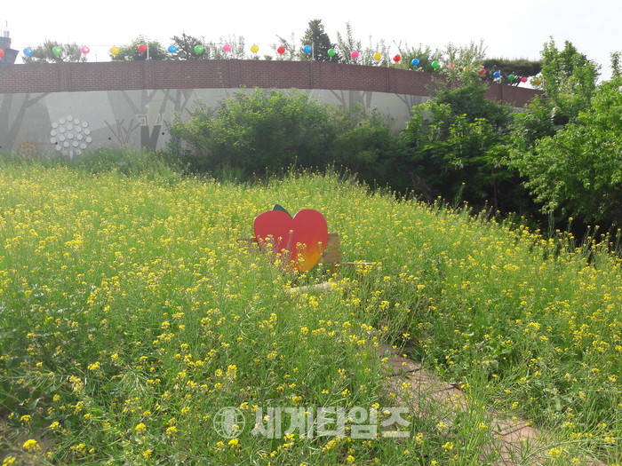 최근 유채꽃이 만발해 포토존에는 지역주민들의 사진 촬영이 이어지고 있다.