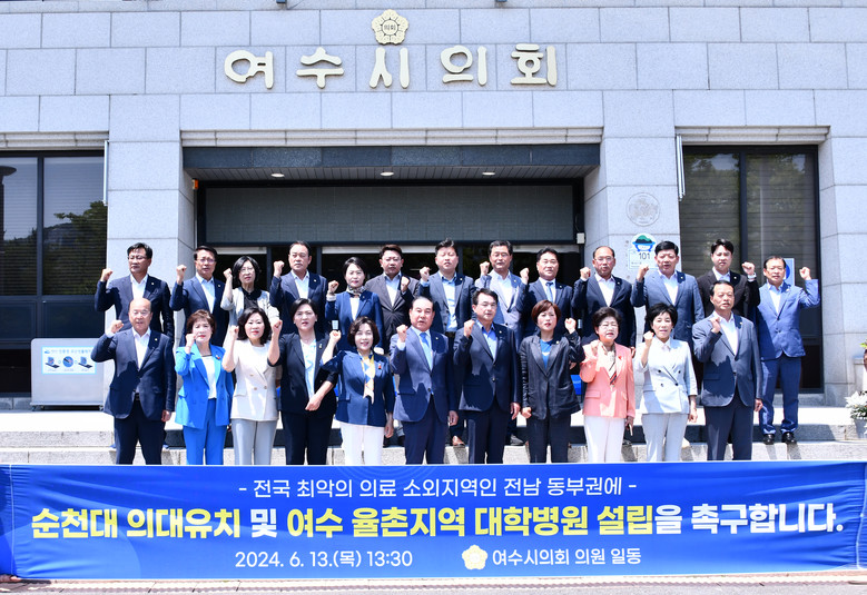 이에 여수시의회는 △ 순천대에 국립 의과대학을 설치할 것 △ 정부는 2005년 정부의 국·공립대학교 통·폐합 정책 추진에 따라 국립 여수대학교와 전남대학교간 통·폐합 협약서 및 양해각서를 성실히 이행할 것 △ 순천시는 순천대 국립 의과대학 설치에 따른 인접한 여수시 율촌면 지역에 대학병원 설립을 동의할 것을 촉구했다.