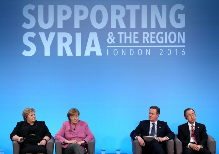영국 의회 건물 부근의 콘퍼런스센터에서 삼엄한 경비 아래 열린 하루짜리 이번 회의는 요르단·레바논·터키 등 인근국가들에 피신한 시리아 난민 460만 명을 돕는 노력에 새로운 긴급성을 부여하기 위해 마련된 것이다. 이들 말고도 추가 600만 명은 시리아 내에서 삶터를 잃은 상태이며 25만 명은 사망했다.