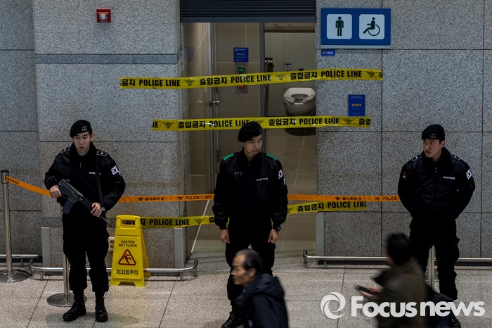 이에 대해 경찰은 유씨를 유력한 용의자로 특정해 수사 착수 5일 만에 유씨를 검거했다.(인천=포커스뉴스) 인천국제공항에 폭발물 의심물체와 함께 아랍어로 된 협박성 메모가 발견된 사건 수사가 진행되고 있는 1일 오후 의심물체가 발견된 인천공항 입국장 화장실에서 경찰병력이 경계근무를 서고 있다. 2016.02.01 강진형 기자