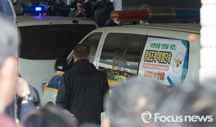 (평택=포커스뉴스) 학대와 무관심 속에 살해당한 신원영 군의 계모 김모 씨와 친부 신모 씨가 14일 오후 경기도 평택시 포승읍 자택에 도착, 기다리던 시민단체 회원들과 시민들이 던진 계란 흔적이 호송차량에 남아 있다.