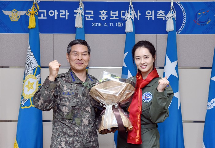 (서울=포커스뉴스) 11일 충남 계룡시 공군본부에서 열린 홍보대사 위촉식에서 홍보대사로 위촉된 배우 고아라가 거수경례를 하고 있다. <사진제공=공군>