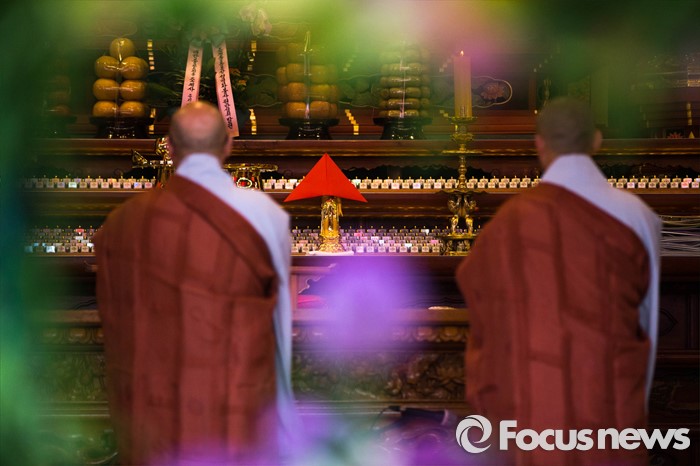 (서울=포커스뉴스) 21일 오전 서울 종로구 조계사에서 관불의식이 열리고 있다. 관불은 불교의식으로 탄생불의 형상에 물을 부어 씻겨 자신의 마음에 쌓인 죄와 번뇌를 맑고 깨끗하게 만들어 복을 누리게 된다고 알려진 의식이다.