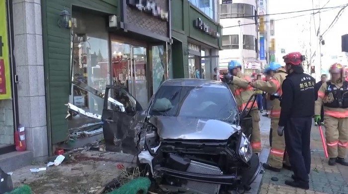 | △ 가로등 들이받고 한복집 돌진한 70대男 운전자 |