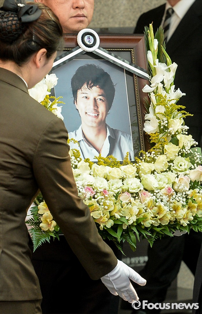 (서울=포커스뉴스) 뇌사 판정을 받고 장기를 기증한 뒤 사망한 배우 故김성민의 발인식이 28일 오전 서울 서초구 가톨릭대학교 성모병원 장례식장에 엄수되고 있다.