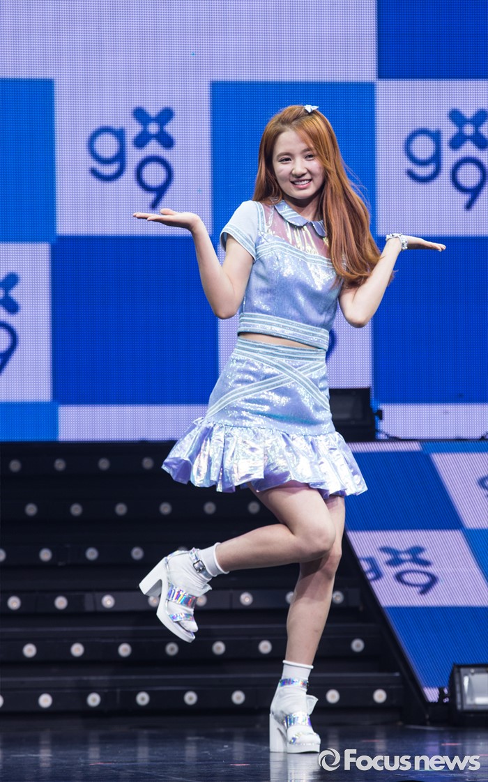 (서울=포커스뉴스) 28일 오후 서울 광진구 예스24 라이브홀에서 열린 걸그룹 구구단의 데뷔 쇼케이스에 참여한 멤버 샐리가 포토타임을 갖고 있다.