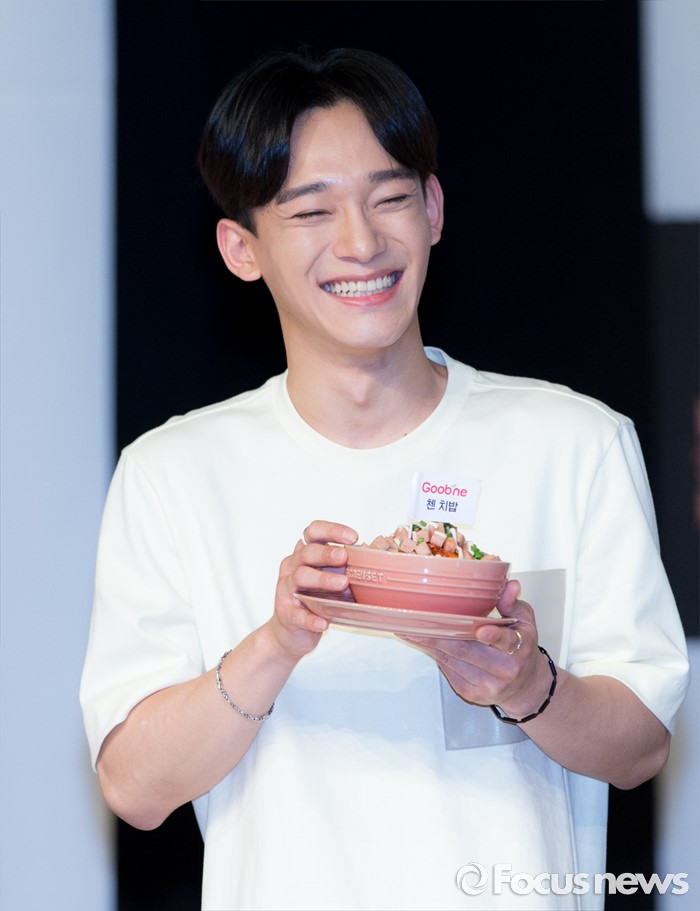 (서울=포커스뉴스) 29일 오후 서울 강남구 일지아트홀에서 열린 '굽네 볼케이노와 함께하는 엑소(EXO) 치밥 쿠킹 팬사인회'에서 첸이 포즈를 취하고 있다.