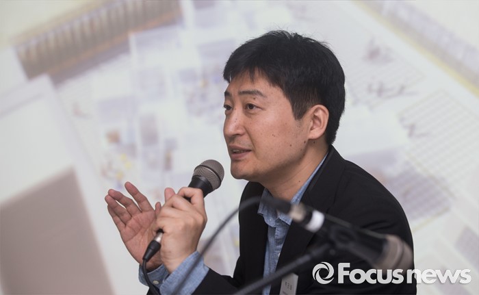 (서울=포커스뉴스) 5일 오전 서울 종로구 국립현대미술관 서울관에서 열린 '젊은 건축가 프로그램 2016' 기자간담회에 참석한 박근태 학예연구사가 프로그램을 소개하고 있다.
