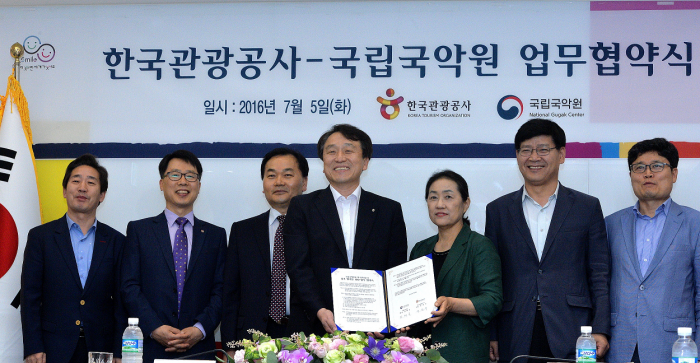 (서울=포커스뉴스) 국립국악원은 5일 오후 한국관광공사 서울센터에서 한국관광공사와 업무협약을 체결하고, 국내외 국악과 관광의 진흥 발전을 위해 상호 협력하기로 했다.