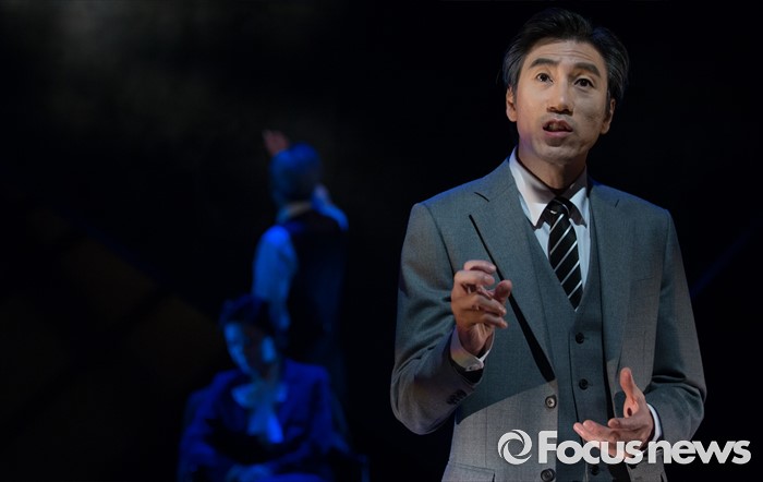 (서울=포커스뉴스) 14일 오후 서울 종로구 동숭아트센터 소극장에서 열린 연극 '코펜하겐' 프레스콜에 참여한 배우 서상원이 주요장면을 시연하고 있다.