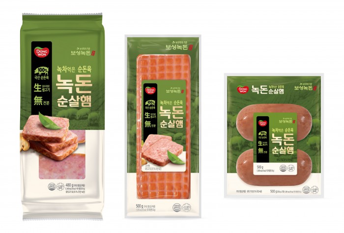 '녹돈 순살햄'은 전남 보성에서 자란 녹돈만을 사용했으며 사료 공급부터 제품 출하까지 동원F&B가 직접 관리해 품질이 우수하다. 얼리지 않은 생고기에 전분을 섞지 않고 햄을 만들어 고기 함량이 높고 육즙이 풍부하다.