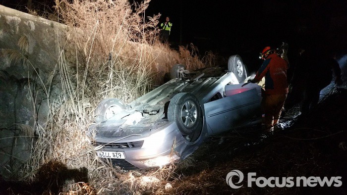 | △ 홍천, 농로옆 개울가 승용차 전복...경찰 조사중 |