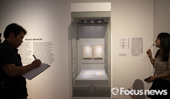 (서울=포커스뉴스) 28일 오후 서울 용산구 국립한글박물관에서 열린 기획특별전 '광고 언어의 힘' 언론 간담회에서 참석자들이 다양한 광고를 살펴보고 있다. 개화기부터 현재까지 광고의 130여년 역사를 우리말과 우리글의 관점에서 풀어낸 이 기획특별전은 7월 28일부터 11월 27일까지 열린다.