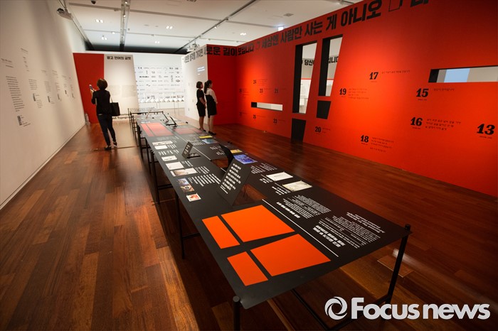 (서울=포커스뉴스) 28일 오후 서울 용산구 국립한글박물관에서 열린 기획특별전 '광고 언어의 힘' 언론 간담회에서 참석자들이 다양한 광고를 살펴보고 있다. 개화기부터 현재까지 광고의 130여년 역사를 우리말과 우리글의 관점에서 풀어낸 이 기획특별전은 7월 28일부터 11월 27일까지 열린다.