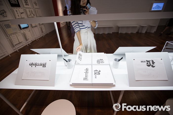 (서울=포커스뉴스) 28일 오후 서울 용산구 국립한글박물관에서 열린 기획특별전 '광고 언어의 힘' 언론 간담회에서 참석자들이 다양한 광고를 살펴보고 있다. 개화기부터 현재까지 광고의 130여년 역사를 우리말과 우리글의 관점에서 풀어낸 이 기획특별전은 7월 28일부터 11월 27일까지 열린다.