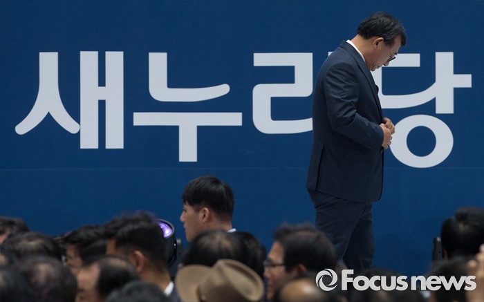 (서울=포커스뉴스) 9일 오후 서울 송파구 잠실실내체육관에서 열린 새누리당 4차 전당대회에 참석한 이정현 의원이 당대표로 선출된 후 수락연설을 위해 단상으로 향하고 있다.