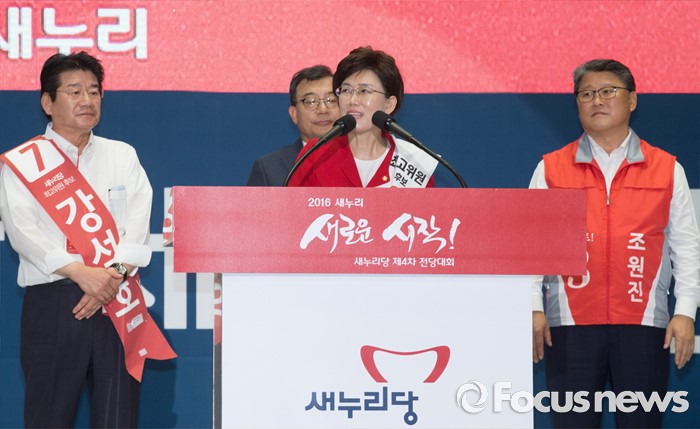 (서울=포커스뉴스) 9일 오후 서울 송파구 잠실실내체육관에서 열린 새누리당 4차 전당대회에서 최연혜 신임 최고위원이 소감을 전하고 있다.