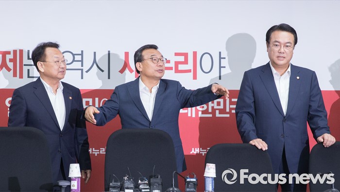 | △ 당정 자리한 이정현-정진석-유일호 |
