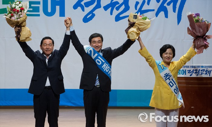 김상곤·이종걸·추미애 당 대표 후보(기호순)는 이날 울산 MBC컨벤션홀에서 열린 더민주 울산시당 정기대의원대회 및 당 대표 최고위원 후보 합동연설회에서 한목소리로 "당의 분열을 극복해야 한다"면서도 자신들의 핵심 키워드를 제시하면서 지지를 호소했다.